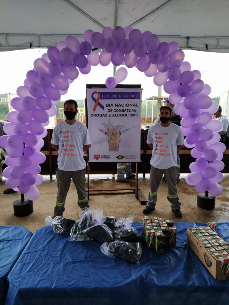O mês de fevereiro de 2021 foi marcado pela campanha ‘Fevereiro Roxo’, já que, no dia 18 de fevereiro, é comemorada a data nacional de combate as drogas e ao alcoolismo. A Pavidez Engenharia juntamente com a Nobrega Pimenta e os diretores Edson Fernando Maciel Tavares e Eloizio Maciel Tavares, realizou a campanha voltada para a prevenção do alcoolismo e do uso de drogas.