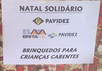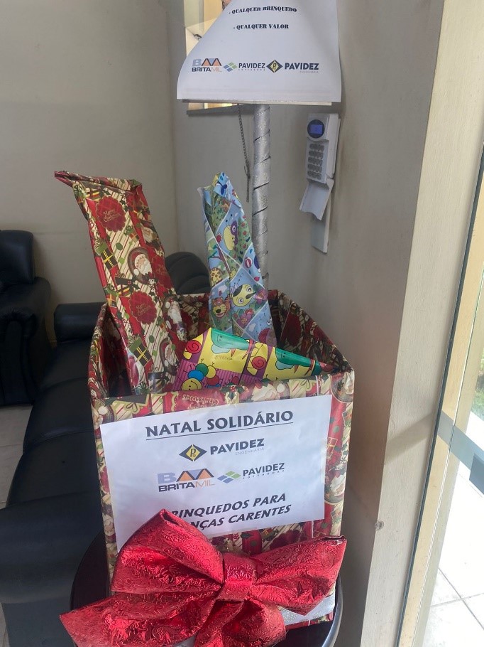 7 de fevereiro de 2022Quando o Natal se aproxima, o espírito solidário costuma se revigorar. A data sensibiliza as pessoas criando um cenário que deveria existir durante o ano inteiro. Para aqueles que querem deixar os festejos natalinos mais felizes para outros, A CAMPANHA NATAL SOLIDÁRIO, é um projeto desenvolvido pela Pavidez Engenharia em conjunto com as empresas do grupo Britamil e Pavidez Loteadora, com incentivo dos sócios Edson Fernando Maciel Tavares e Eloizio Maciel Tavares.